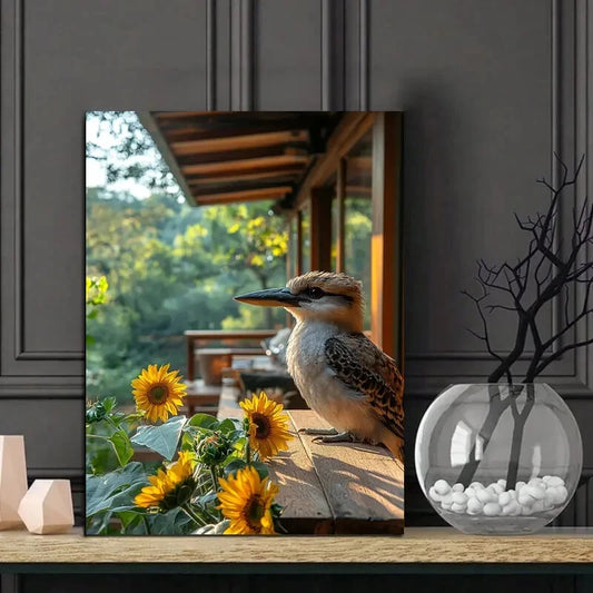 Kookaburra Bird Sitting on The Edge Painting Outdoor 40x60cm Metal Print Ready to Hang