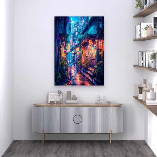 Tokyo Night Street Neon Cityscape 40x60cm Metal Print Ready to Hang
