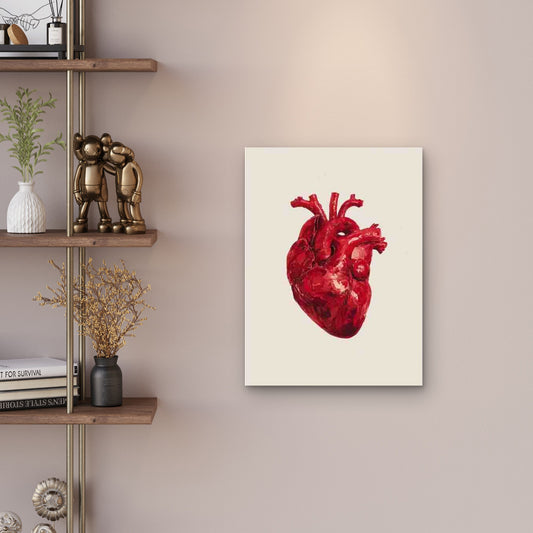 Red Heart in Beige Background Metal Print Ready to Hang