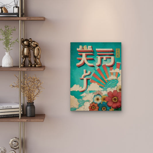 Retro Typography with Red Sunburst Metal Print Ready to Hang
