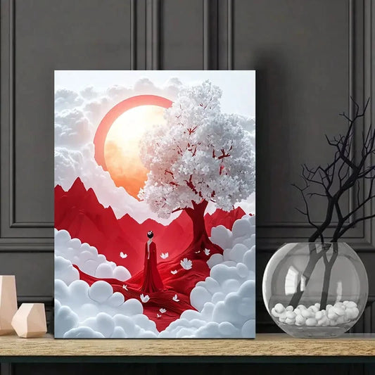 Cherry Blossom Tree with Pink Flowers Painting 40x60cm Metal Print Ready to Hang