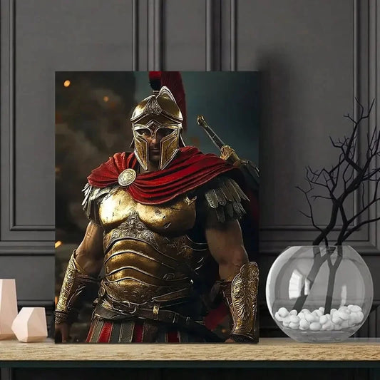Greek Spartan Warrior In Golden Armor with a Red Cloak 40x60cm Metal Print Ready to Hang