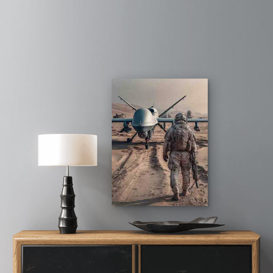 Detailed Drone & Soldier Scene Metal Print Ready to Hang