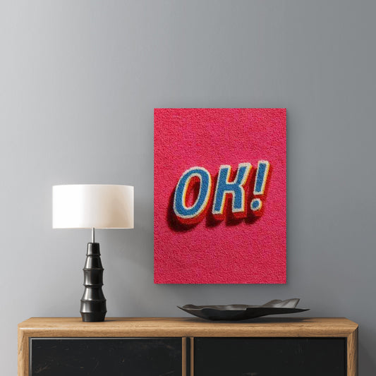 Pink & Red Typography with Bold 'OK!' Metal Print Ready to Hang