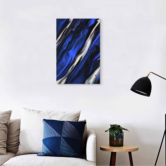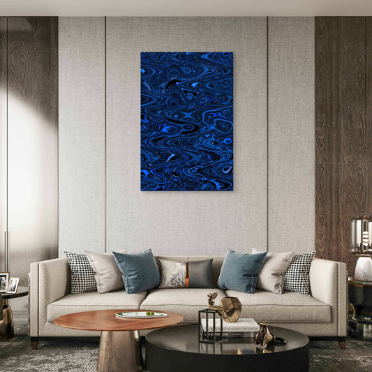 Abstract Digital Art with Blue and Black Swirls 60x90cm Metal Print Ready to Hang