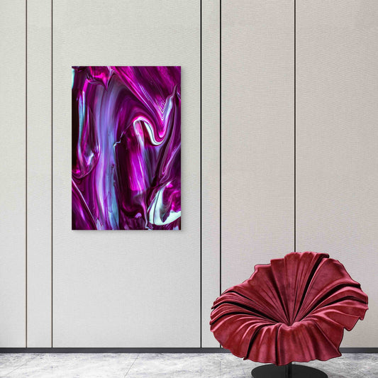 Close-Up of Purple, White, and Black Paint Swirls 60x90cm Metal Print Ready to Hang