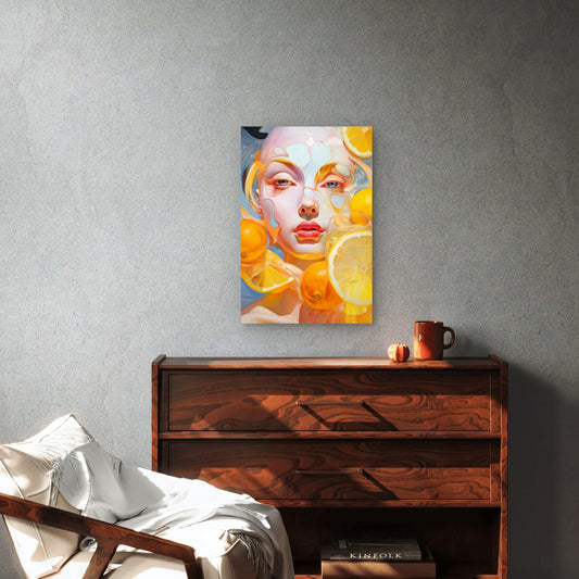 Female Face with Vibrant Orange and Yellow Tones 60x90cm Metal Print Ready to Hang