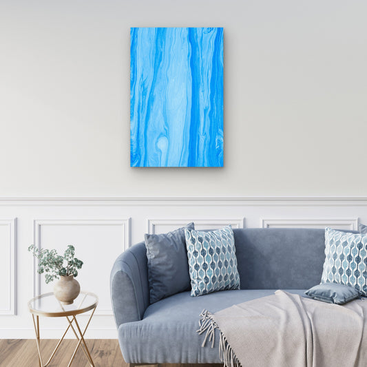 Light Blue Abstract Fluid Art 60x90cm Metal Print Ready to Hang