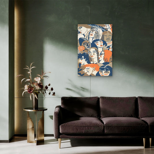 Faces in a Crowd Illustration 60x90cm Metal Print Ready to Hang