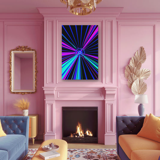 Digital Abstract with Neon Light Rays 60x90cm Metal Print Ready to Hang