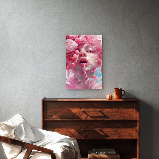 A Girl with a Pink Toothbrush 60x90cm Metal Print Ready to Hang