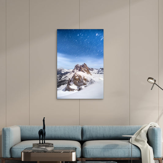 Winter Night at Seceda Peaks, Dolomites 60x90cm Metal Print Ready to Hang