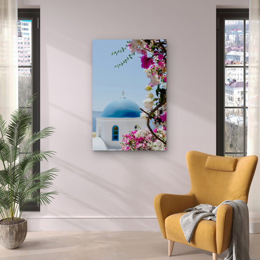 Blue-Domed Churches in Oia, Santorini 60x90cm Metal Print Ready to Hang