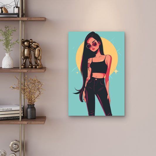 Stylish Pop Art Illustration Of A Girl In Black Cloth 60x90cm Metal Print Ready to Hang