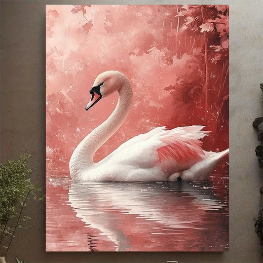 Pink & White Swan with Serene Nature 60x90cm Metal Print Ready to Hang