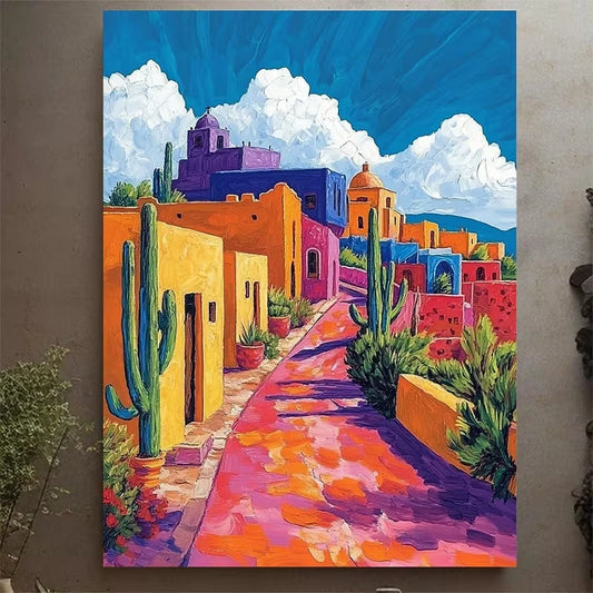 Colorful Adobe Buildings & Cacti 60x90cm Metal Print Ready to Hang