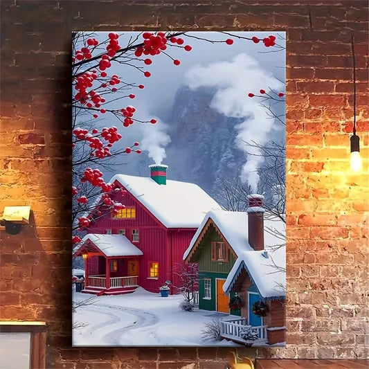 Snow-Covered House Landscape 60x90cm Metal Print Ready to Hang