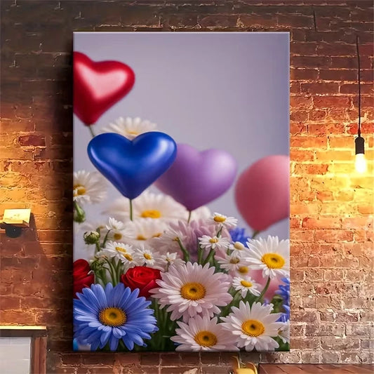 Vibrant Floral Balloons & Daisies 60x90cm Metal Print Ready to Hang