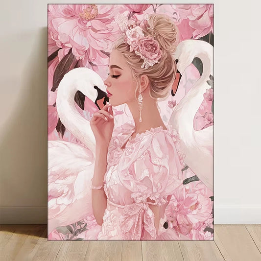 Elegant Swan Whimsical Pink Floral Design 60x90cm Metal Print Ready to Hang