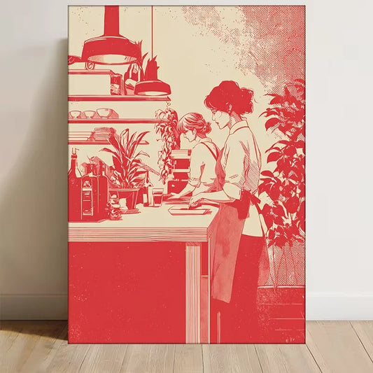 Red & Beige Vintage Dining 60x90cm Metal Print Ready to Hang