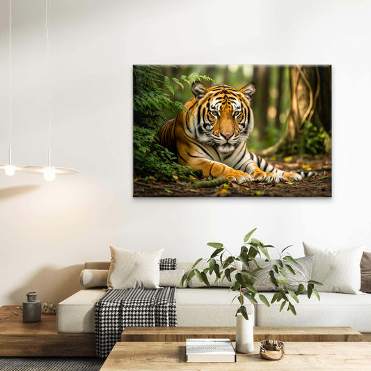 Majestic Bengal Tiger Resting in Lush Jungle Wall Art Decor 100% Australian Made