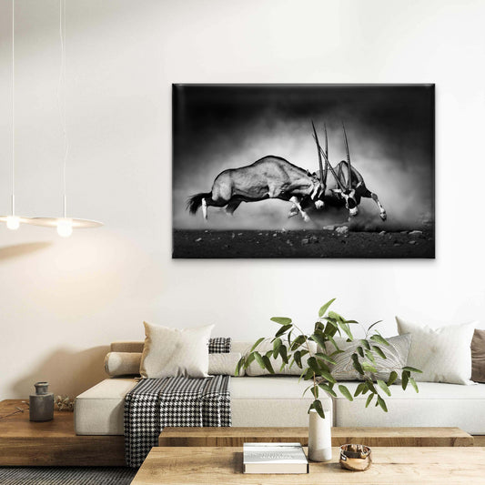 Gemsbok Antelope Fighting Namibia Wall Art Decor 100% Australian Made