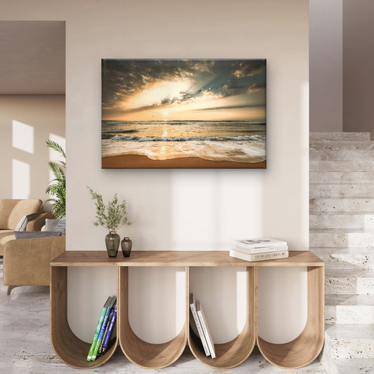 Golden Sunset Coastal Beach Warm Tranquil Seascape Wall Art Decor 100% Australian Made
