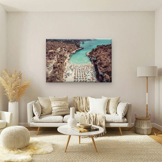 Aerial view of Cala Llombards, Mallorca Island, Spain, Neutral Vintage Wall Art Decor 100% Australian Made