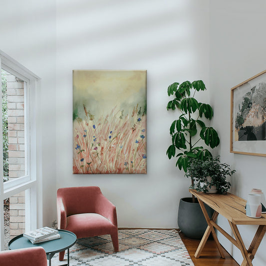 Golden Meadow, Hand painted watercolor nature art Neutral Vintage Wall Art Decor 100% Australian Made