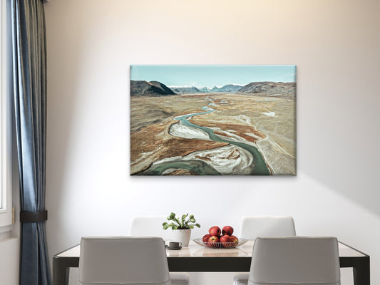 Aerial view of Orkhon River, Mongolia Neutral Vintage Wall Art Decor 100% Australian Made