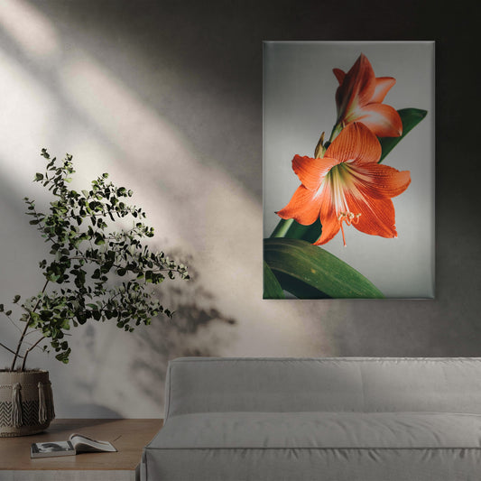 Blooming Red Lily flowers with green leaves Neutral Vintage Wall Art Decor 100% Australian Made