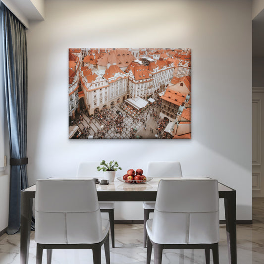 Aerial view of Market Square old town Prague, Czech Republic Neutral Vintage Wall Art Decor 100% Australian Made