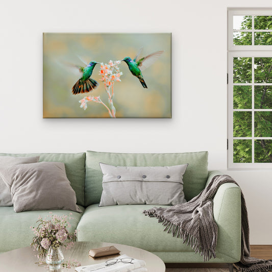 Hummingbirds Feeding from A Flowering Vintage Close-Up View Wall Art Decor 100% Australian Made