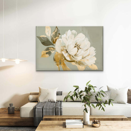 Soft Sage Green White Peony with Textured Petals Painting Wall Art Decor 100% Australian Made