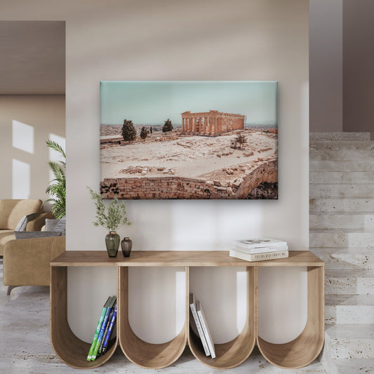 Aerial view of Parthenon Temple that dominates Acropolis, Athens, Greece Neutral Vintage Wall Art Decor 100% Australian Made