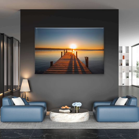 Wooden Pier at Lake Sunset Bulgaria Wall Art Decor 100% Australian Made