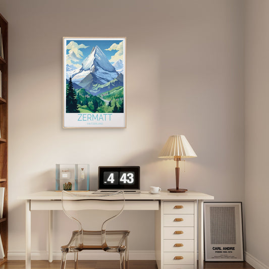 Zermatt Switzerland, Matterhorn Mountain Travel Poster Print Wall Art