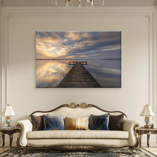 Wooden Pier Extending Into a Calm Lake Netherlands Wall Art Decor 100% Australian Made