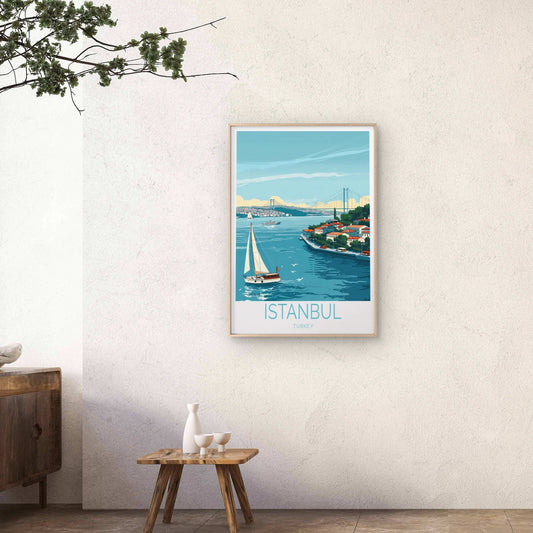 Istanbul Turkey, Sail Boats & Bridge Art Travel Poster Print Wall Art