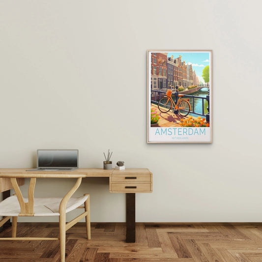 Amsterdam Netherlands, Canal & Bicycle Travel Poster Print Wall Art