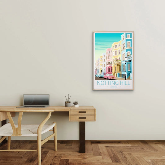 Notting Hill London, Colorful House Art Travel Poster Print Wall Art