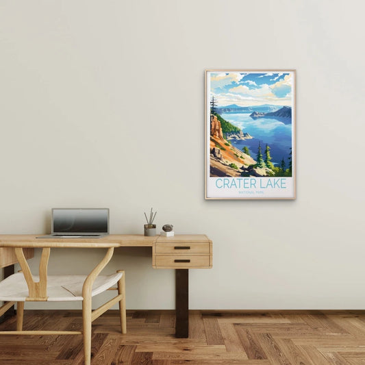 Crater Lake National Park, Pine Tree Art Travel Poster Print Wall Art