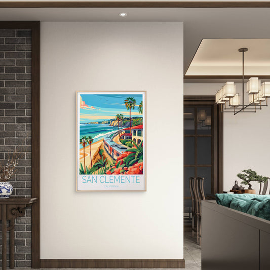 San Clemente California, Beach Train Travel Poster Print Wall Art