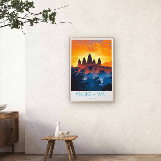 Angkor Wat Hindu Temple in Cambodia Art Travel Poster Print Wall Art