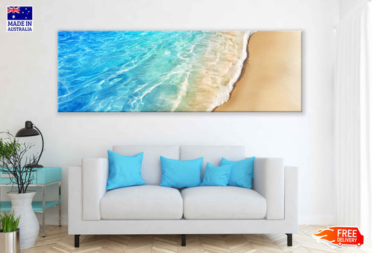 Panoramic Canvas Clear Blue Sea Waves View Photograph High Quality 100% Australian Made Wall Canvas Print Ready to Hang