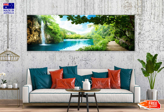 Panoramic Canvas Colourful Waterfall & Forest High Quality 100% Australian made wall Canvas Print ready to hang