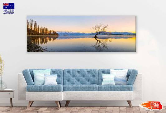 Panoramic Canvas Wanaka Tree on Lake Scenery Photograph High Quality 100% Australian Made Wall Canvas Print Ready to Hang