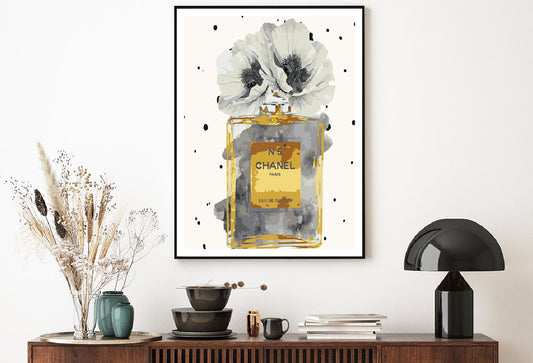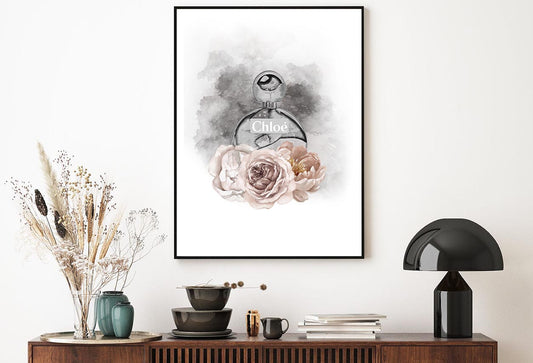 Round Perfume Bottle with Flowers Home Decor Premium Quality Poster Print Choose Your Sizes
