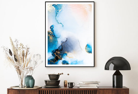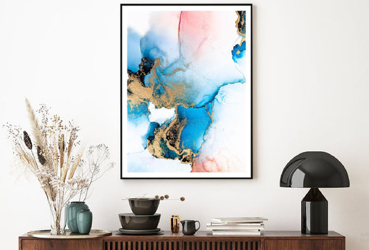 Blue Pink & Gold Fluid Abstract Design Home Decor Premium Quality Poster Print Choose Your Sizes
