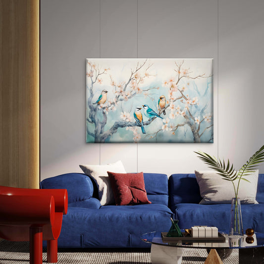 Pastel Clored Birds Perched on Branches Wall Art Decor 100% Australian Made